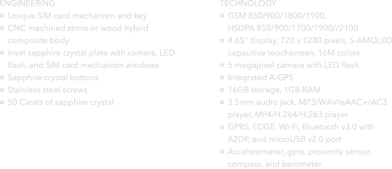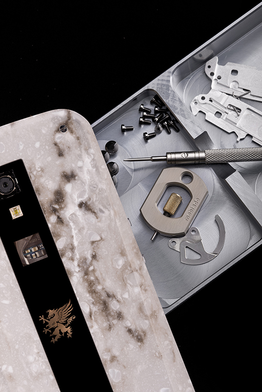 Showcasing the uniqueness and creativity Mobiado is famous for; the Grand Touch Executive is the first phone to use a SIM card mechanism and the first to be created from a stone hybrid material. Crafted in the same process as technical instruments, Mobiado phones are more than simply phones, they are precision mobile instruments.