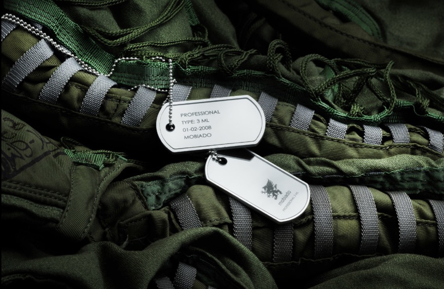 Nhắc đến quân ngũ, không thể không nhắc đến một thiết kế phụ kiện giàu sức gợi: thẻ tên (dogtag). Phụ kiện độc nhất vô nhị ML Dog Tag chính là một kỷ niệm chương mà Mobiado dành vinh danh dòng thiết bị đầu tiên mang cảm hứng quân đội, Luminoso Steath (2008), của hãng.