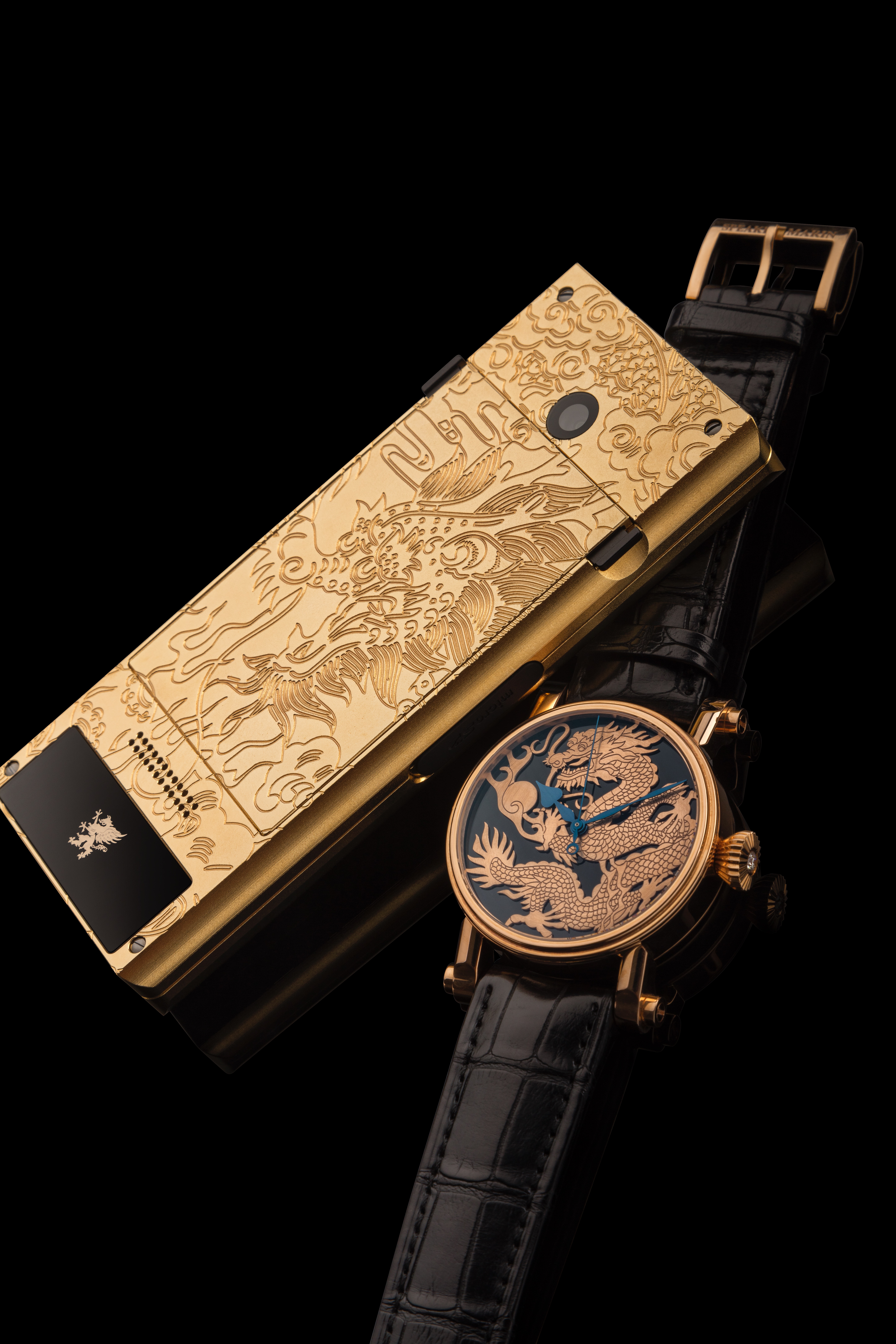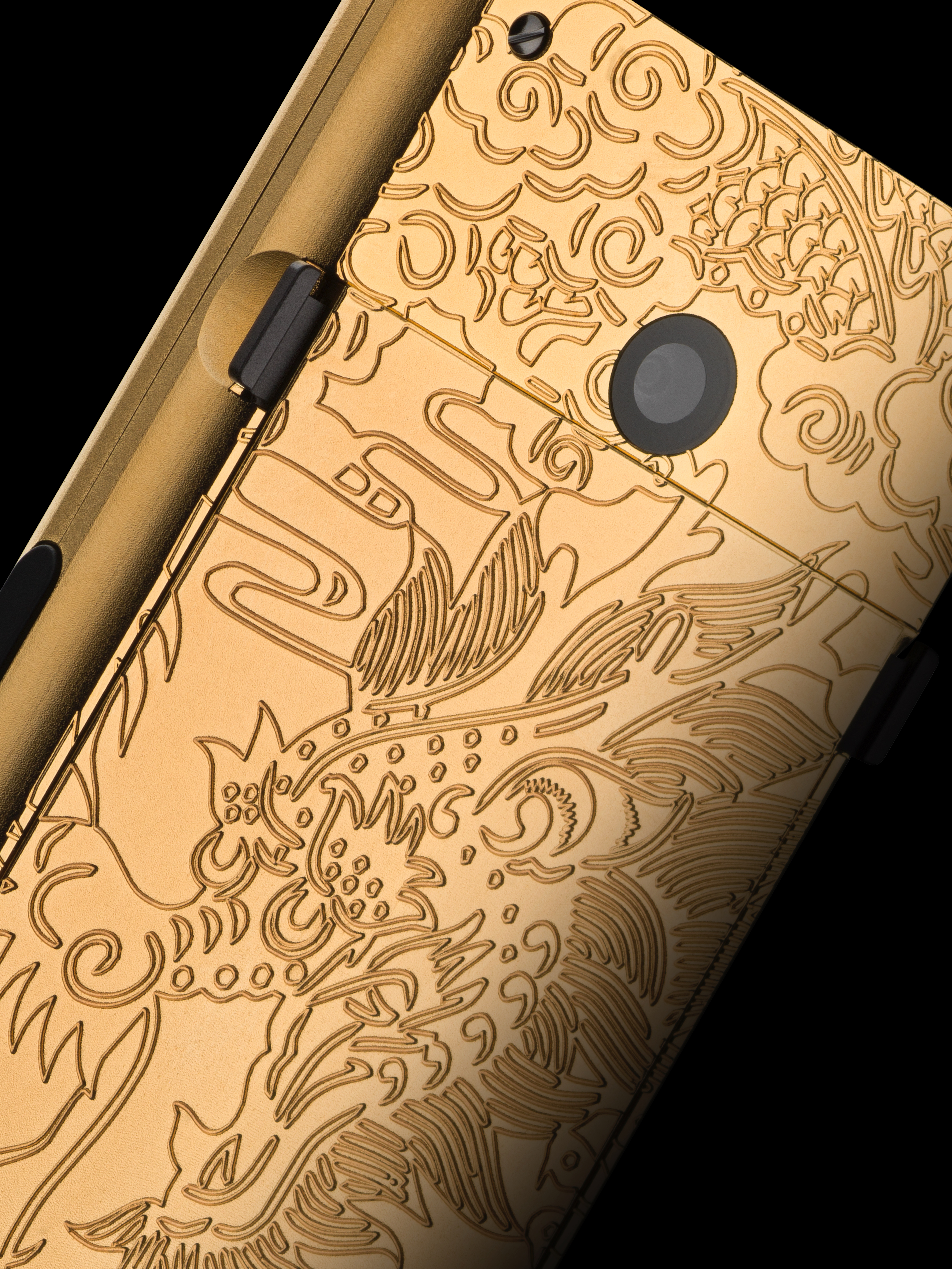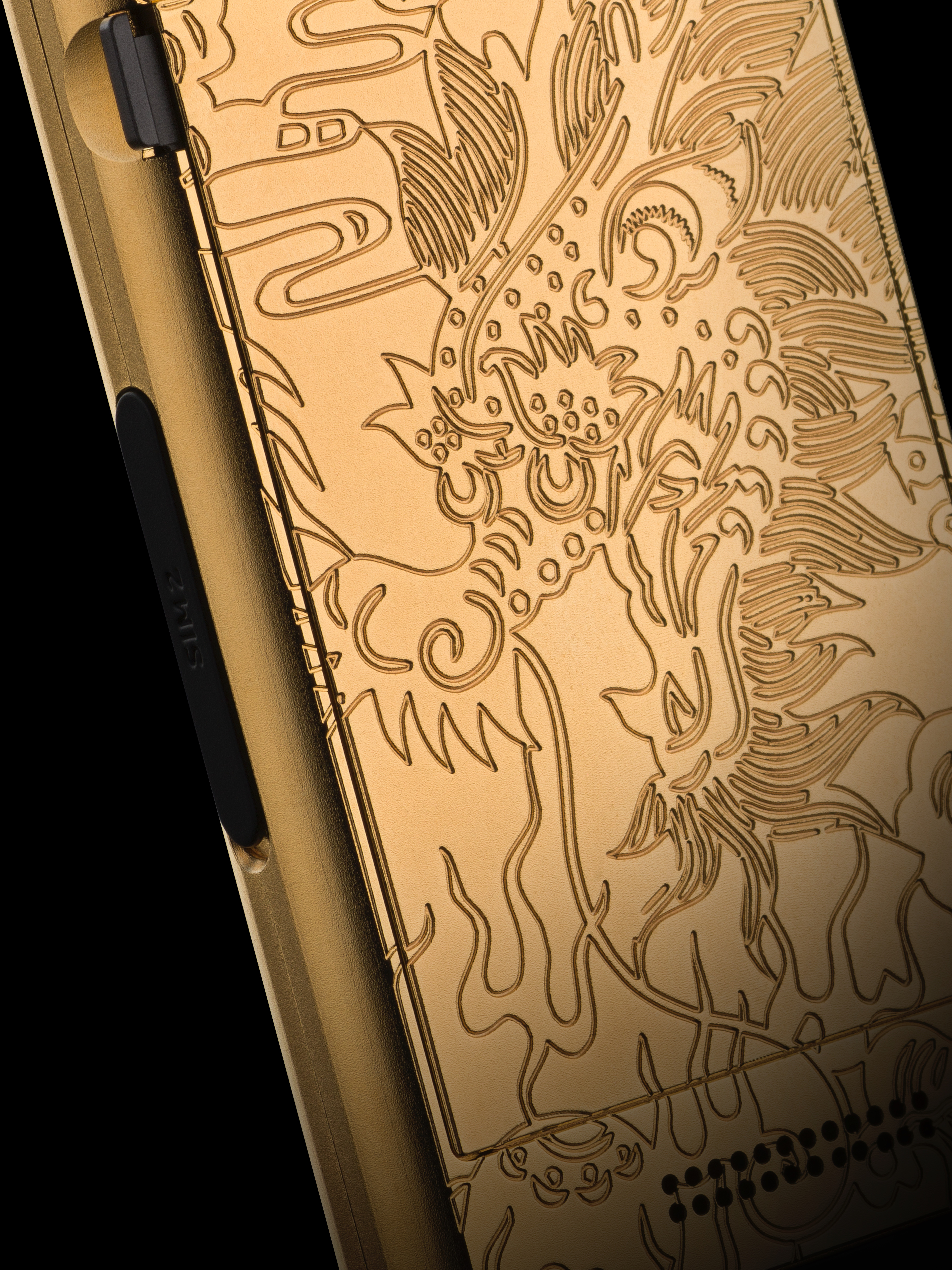 Từng phần thân của thiết bị được chế tác từ những khối riêng biệt và phải đòi hỏi tới hơn 16.000 thao tác tỉ mỉ cho việc chạm khắc hình tượng Rồng và khớp các chi tiết trên khắp bề mặt của điện thoại.
